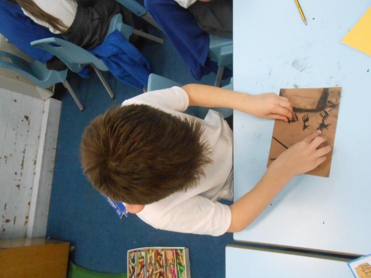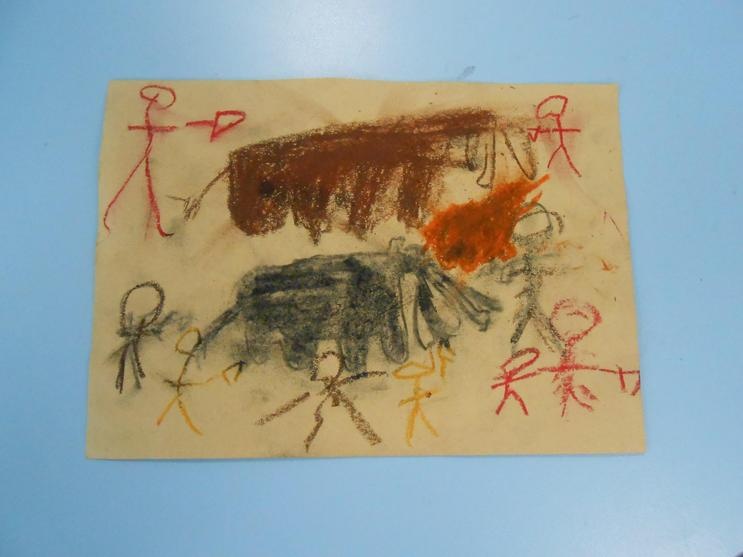 18.10.2022 - Cave Paintings. Oak Class used charcoal, soft pencils and pastels to recreate images of life during the Stone Age, in the style of the cave art that they have been looking at.