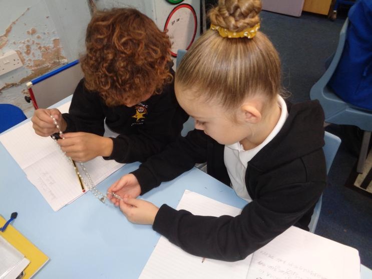 5.10.2022 Mrs Glynn brought her prayer artifacts from home. They included rosary beads, candles, crosses, prayer books, crucifixes and statues.